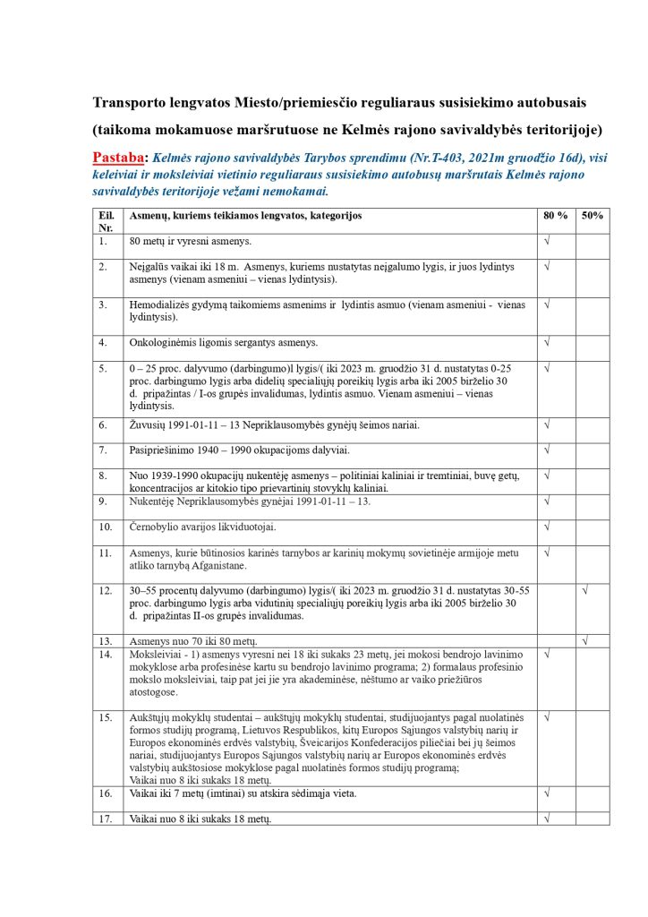 Visi keleiviai, norintys įsigyti bilietą su nuolaida, turi pateikti nuolaidai tinkantį dokumentą. Asmenys, kuriems priklauso nuolaida pagal amžių , pateikia amžių įrodantį asmens dokumentą.